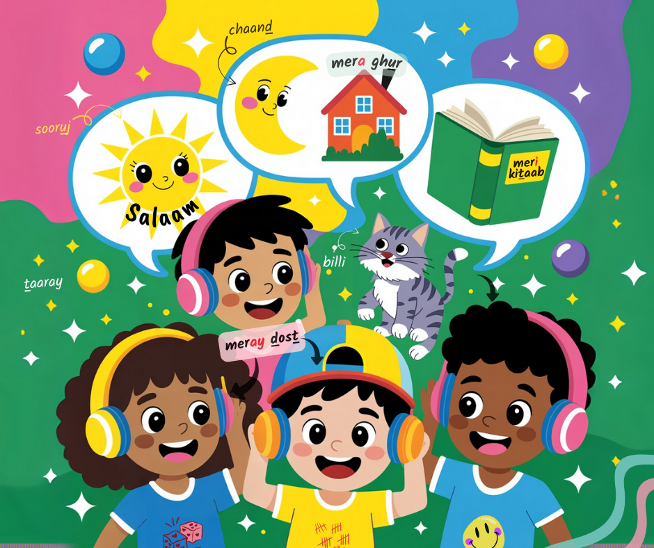 This course is designed for Urdu beginners of Ages 7-12 who wish to take a short 6-week course to learn to greet and introduce themselves with confidence along with learning the gender rules in Urdu to know whether things around them are masculine or feminine in Urdu, making plurals in Urdu with comfort, all the while playing games.